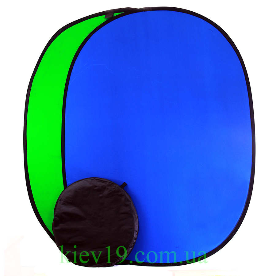 Фон выполнен из материала муслин. Ткань можно стирать, гладить. Устойчива к выгоранию. Фон двухсторонний — с одной стороны зеленый цвет, с другой синий. В разложенном виде имеет натянутую поверхность. Ткань не нужно гладить.