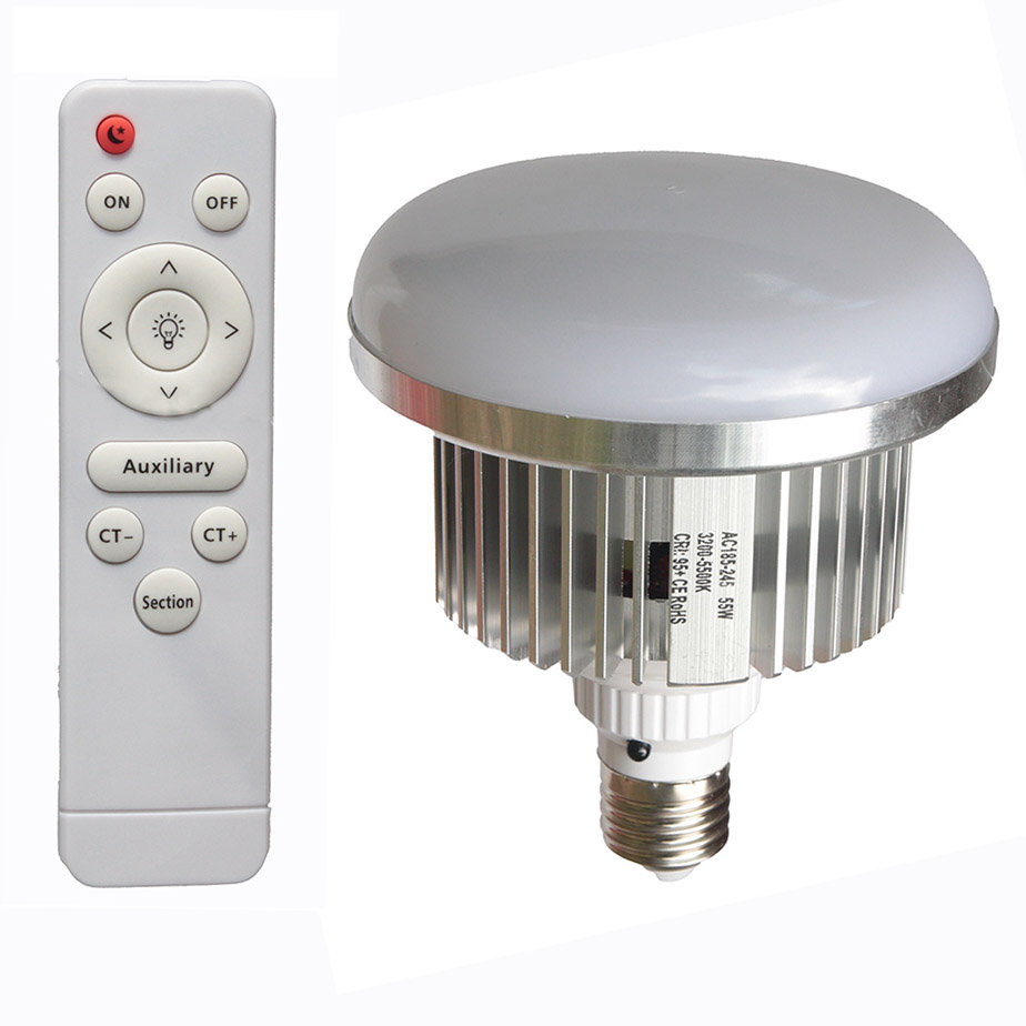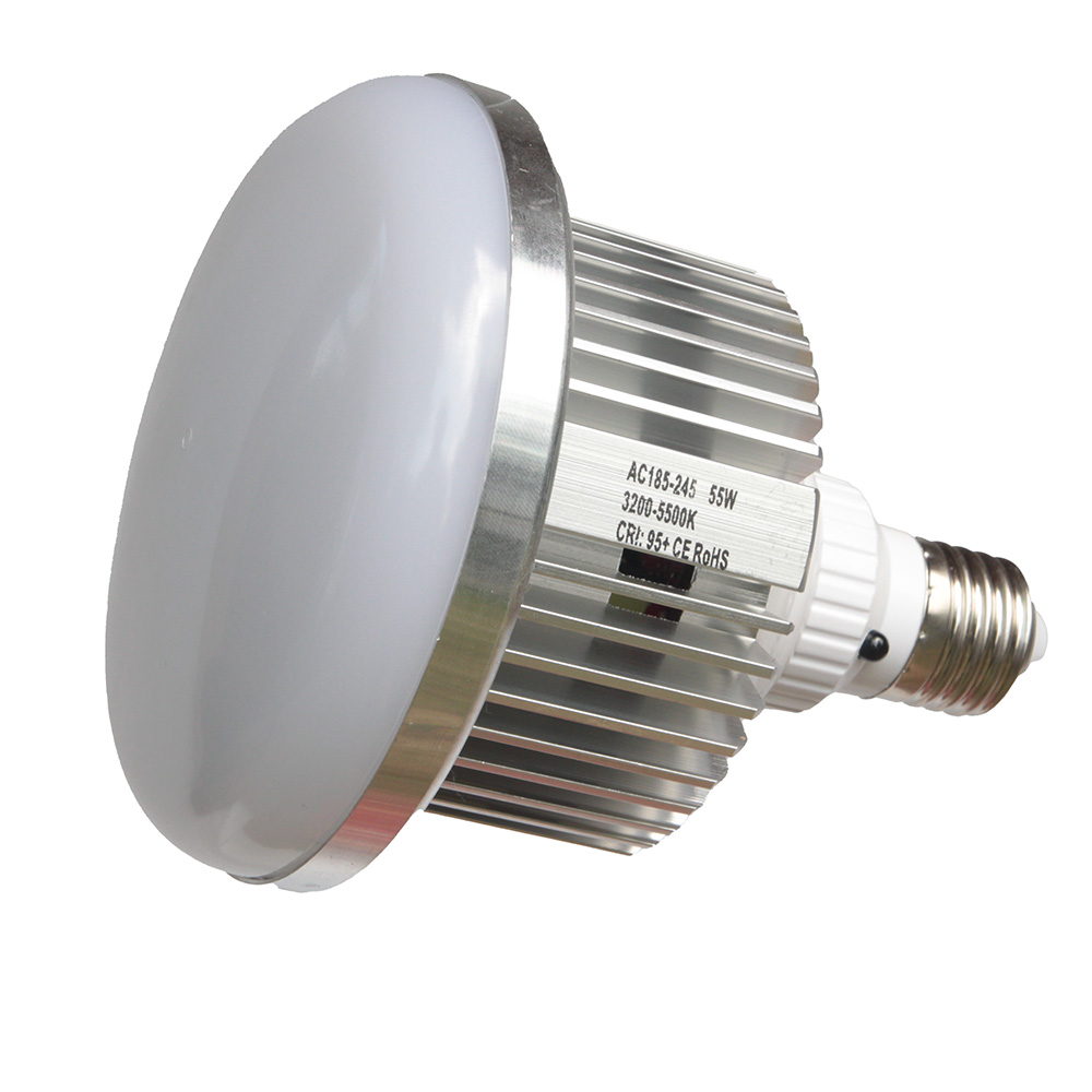 — предназначена для фото и видео съёмки. Применяется в софтбоксах. Имеет идеальные характеристики для любого снимаемого объекта. Для тонких настроек можно использовать дистанционный пульт управления, с помощью которого можно регулировать мощность света и плавный переход цветовой температуры от 3200K до 5500K. Лампа может использоваться в бытовых целях, имеет резьбу под стандартный цокль Е-27