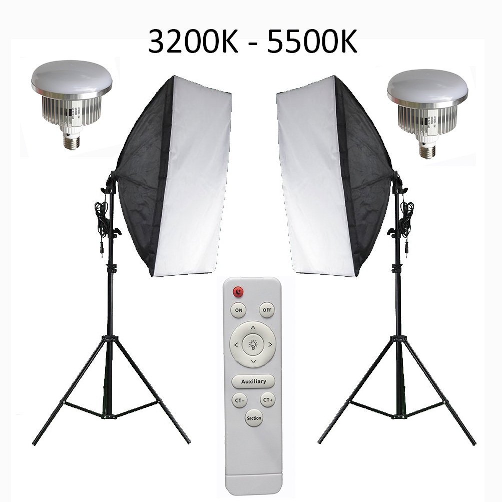 Свет для фото и видео съёмки комплектуется двумя мощными LED лампами, с общим световым потоком 9000 люмен!