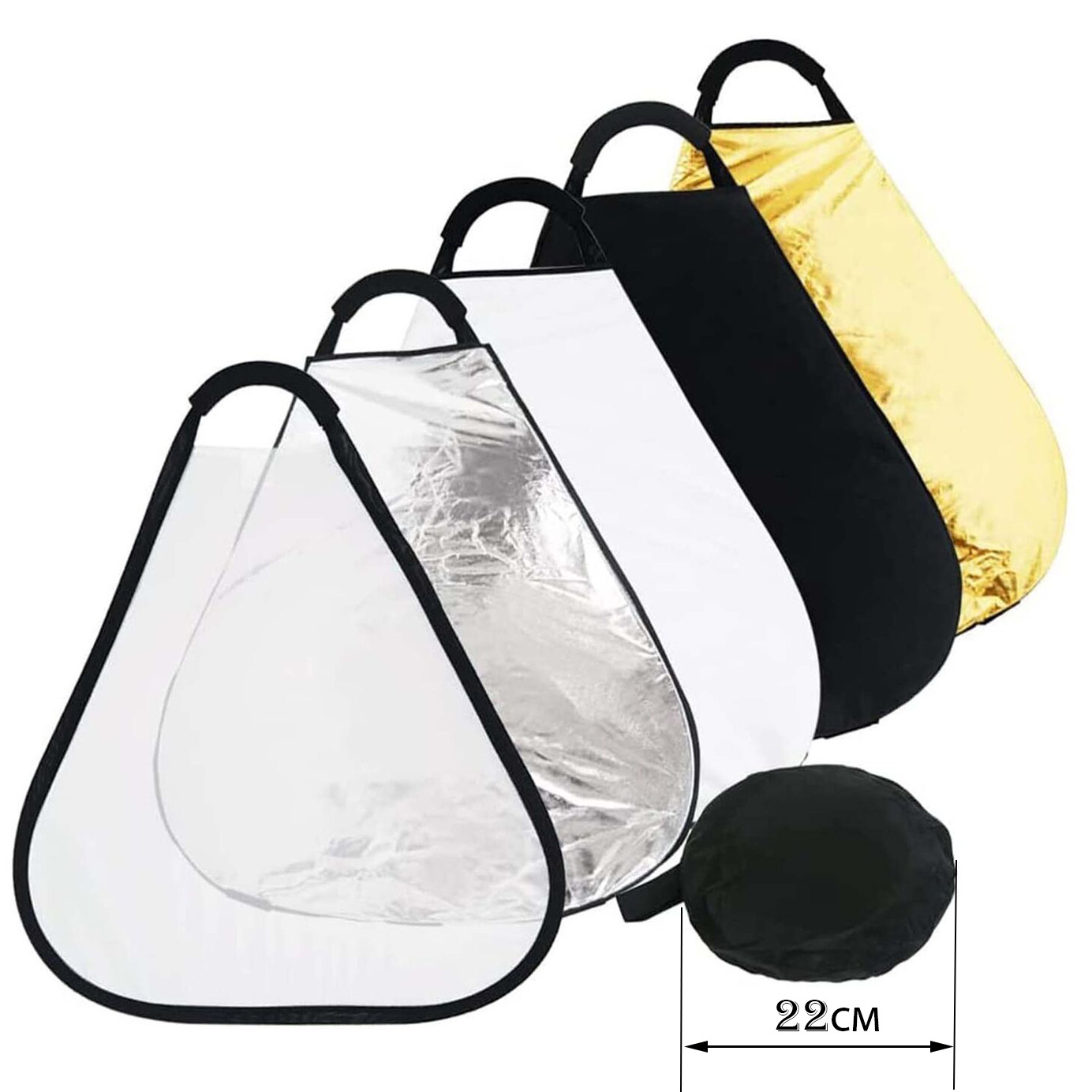 Треугольный фотоотражатель 5-в-1 легко носить с собой. Он позволяет быстро и без усилий отражать или смягчать свет таким, какой вы считаете нужным. Это незаменимый инструмент для любого фотографа, который помогает изменять и контролировать освещение. Треугольный складной фотоотражатель — идеальное дополнение для портретов, мероприятий, свадеб, практически любой съемки.